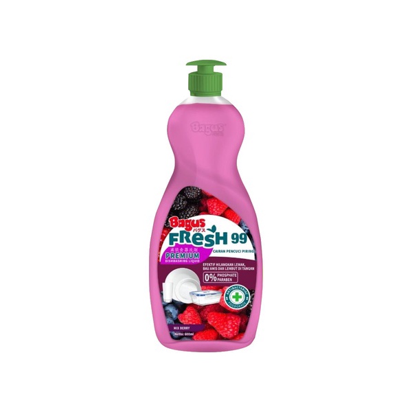 Bagus FRESH 99 Dish Washing 12 x 600mL MIX BERRY + Spons W-20733