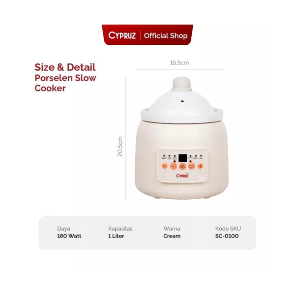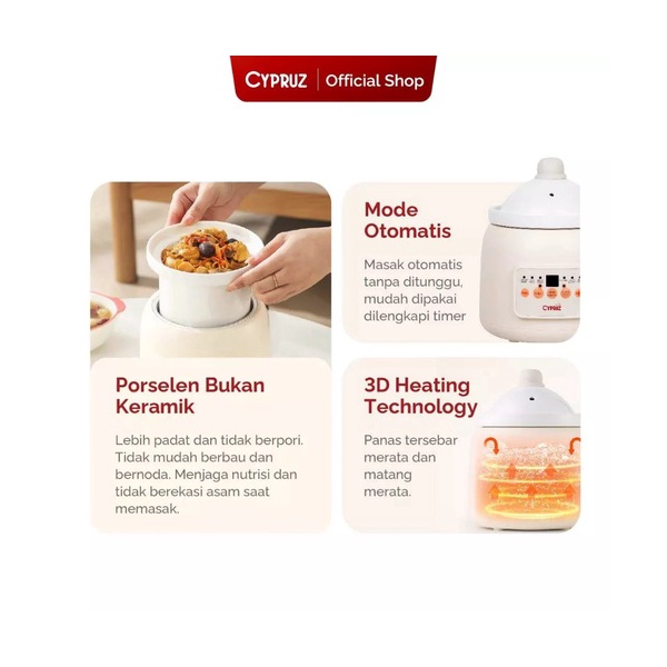 Cypruz Porcelin Digital Slow Cooker 1 Lt