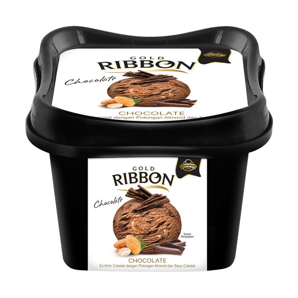 ESKRIM COKLAT DENGAN POTONGAN ALMOND DAN SAUS COKLAT