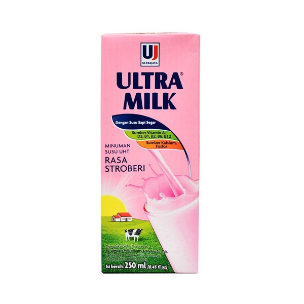 Ultra Milk Strawberry merupakan susu dalam kemasan kaya akan nutrisi yang dikemas secara aseptik dengan menggunakan teknologi UHT. Kualitas tetap terjaga selama kemasan masih tertutup meskipun tidak disimpan dalam lemari es. Dengan kemasan multilapis kedap cahaya dan udara yang melindungi susu dari pengaruh suhu dan sinar matahari yang menurunkan kualitas susunya. Susu kemasan ini diformulasikan kaya akan protein, karbohidrat, vitamin, kalsium, fosfor, dan magnesium