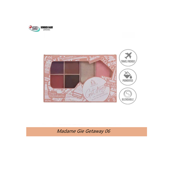 Get Away Make Up Palet terdiri dari 4 produk berbeda: Lipstik, Eye Shadow, Blush On, Highlighter dan Contour. Setiap palet diisi dengan komponen make up yang berbeda dan dilengkapi dengan kuas. Produk ini praktis dan mudah dibawa kemana-mana (ukuran lebih kecil daripada To Go)