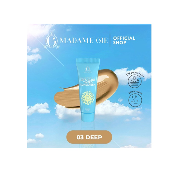 Madame Protect Me Let’s Glow Tinted Sunscreen adalah tabir surya SPF 50 PA ++++ dengan formula yang ringan untuk memberikan perlindungan lebih tinggi terhadap paparan sinar matahari serta membantu meratakan warna kulit dengan hasil akhir yang natural. (Deep)