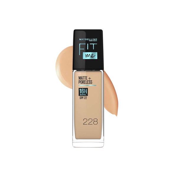 Foundation cair full coverage dengan hasil matte natural. Dapatkan make up flawless dengan menggunakan Maybelline Fit Me! Foundation yang dilengkapi dengan 16H Oil-Control yang mampu menahan minyak dan SPF 22 sebagai perlindungan ekstra. Foundation yang tahan lama hingga 16 jam dengan formula non-comedogenic yang tidak menyumbat pori dan penyebab jerawat. Foundation yang bagus untuk semua jenis kulit, Fit Me! Matte + Poreless juga cocok dijadikan foundation untuk kulit berminyak. Foundation Maybelline ini juga dapat digunakan untuk menyamarkan berbagai masalah kulit seperti noda di wajah, hiperpigmentasi, kulit bertekstur, dan pori-pori wajah. Gunakan Maybelline Fit Me! Matte + Poreless Foundation sebagai salah satu cara mengecilkan pori-pori wajah agar terlihat mulus. Shade Maybelline Fit Me! tersedia dalam 20 warna yang bisa meng-cover semua warna kulit wanita Indonesia.Manfaat