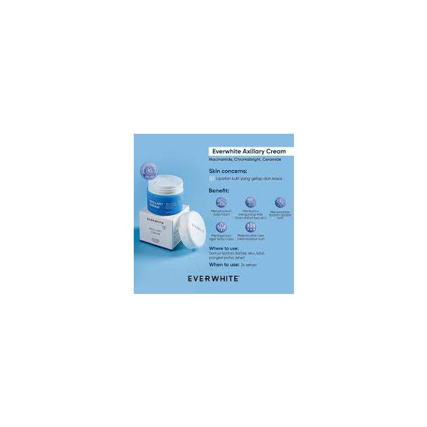 Everwhite hadir dengan Axillary Cream formula terbaru untuk membantu mencerahkan dan merawat area lipatan tubuh (Ketiak, Siku, Lutut, Selangkangan, Leher, Pergelangan kaki, dll). Dengan wangi yang lebih segar dan tahan lama, serta dengan formula yang tidak lengket di kulit