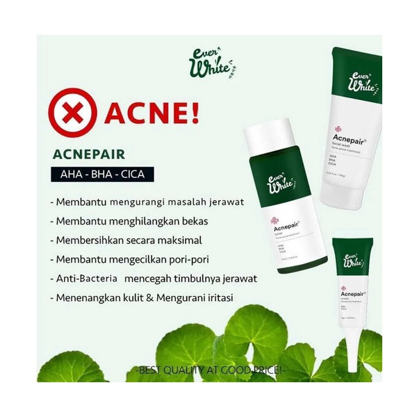 Dengan 3 kandungan terbaik untuk mengatasi jerawat yaitu AHA mampu merangsang pertumbuhan sel kulit baru dan meningkatkan jumlah kolagen agar kulit lebih kenyal dan elastis. BHA dapat mengangkat sel kulit mati hingga ke pori-pori kulitmu. Sedangkan, CICA kaya akan antioksidan yang dapat meredakan peradangan akibat jerawat.