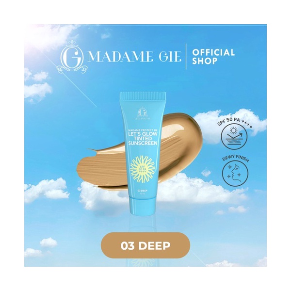 Madame Protect Me Let’s Glow Tinted Sunscreen adalah tabir surya SPF 50 PA ++++ dengan formula yang ringan untuk memberikan perlindungan lebih tinggi terhadap paparan sinar matahari serta membantu meratakan warna kulit dengan hasil akhir yang natural. (Deep)