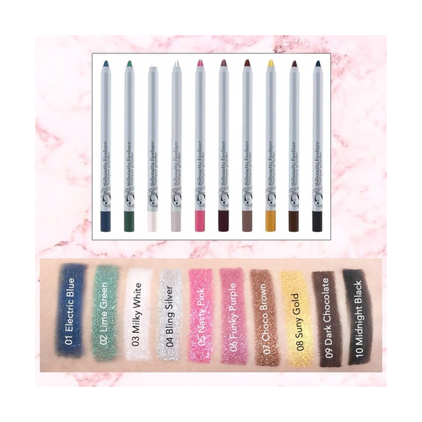 Eyeliner dengan ujung pensil yang lembut untuk menghasilkan garis intens di atas kelopak mata, waterline. Smudgeproof, waterproof, tahan hingga 48 jam dan eyeliner ini dapat di serut.