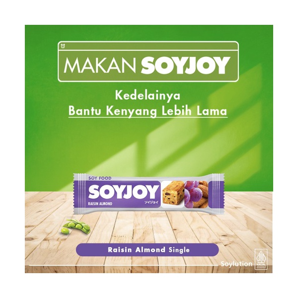 SOYJOY adalah makanan berbentuk bar. Terbuat sepenuhnya dari tepung kedelai dan buah-buahan asli. Menawarkan suatu produk dengan manfaat kedelai dan buah sekaligus menjadi makanan yang sehat dan praktis. Makanan sehat yang cocok untuk diet. SOYJOY merupakan pelopor snack sehat yang terbuat sepenuhnya dari kedelai. SOYJOY memiliki kandungan serat dan protein yang tinggi serta sumber vitamin dan mineral. SOYJOY termasuk dalam kategori snack low GI (rendah glikemik Indeks) sehingga mampu memberikan rasa kenyang lebih lama dan membuat nafsu makan terkendali. Snacking SOYJOY 2 jam sebelum makan membantu mengurangi porsi karbo harian berlebih. SOYJOY sebagai snack sehat memiliki kemasan praktis dan mudah dibawa. Cocok dengan gaya hidup kita, masyarakat urban yang serba cepat. Nikmati kebaikan SOYJOY dalam 8 varian rasa yaitu: Almond Chocolate, Raisin Almond, Strawberry, Danish Cheese, Mochachoco Cashew, Lekker and Nuts, Tropical Cranberries, dan Kedelai Open Sesame yang Terbuat dari kedelai utuh Tinggi serat &amp